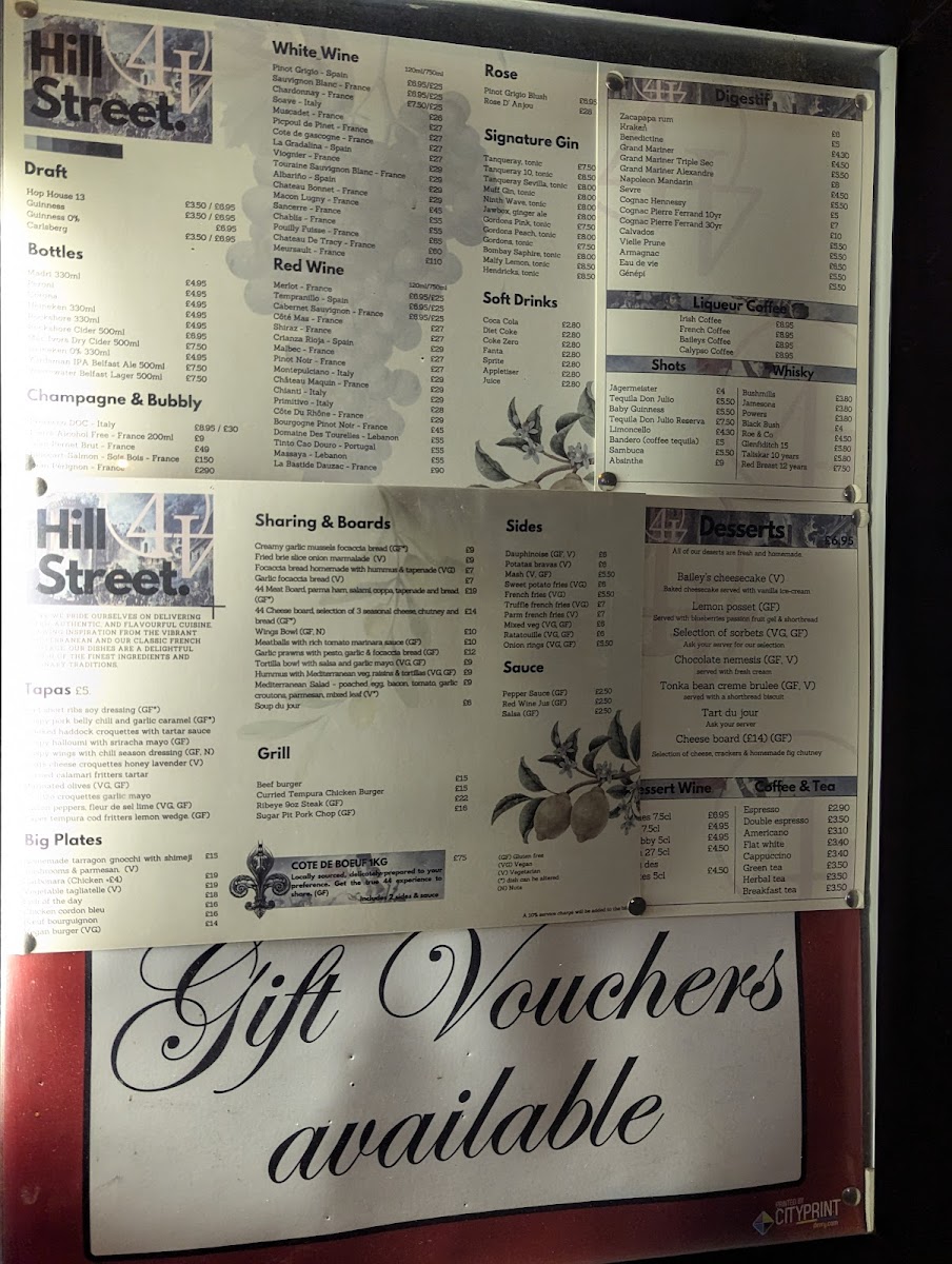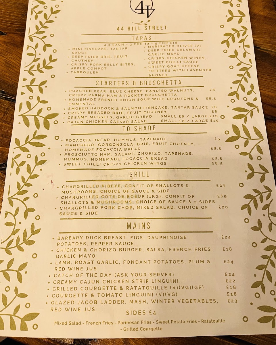 44 Hill Street Menu (Update 2025)